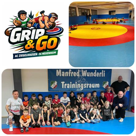 In der Steinbachhalle Ziegelhausen tauchten die jungen Rugbyspieler in die Welt des Ringens ein. Unter Anleitung der erfahrenen Ringertrainer des AC Ziegelhausen lernten sie spielerisch, wie man
