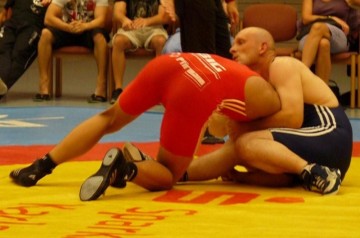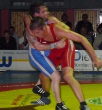 Przemyslaw Motyl (74kg-Freistil) überraschte seinen Gegner Patrick Lehr nach wenigen Sekunden mit einem blitzschnellen Kopf-Hüft-Schwung und feierte einen Schultersieg.