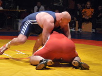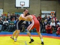 Somit trafen im ersten richtigen Kampf des Abends die zwei Giganten Ludwig Schneider und Sven Lay (120kg-Griechisch-römischen) aufeinander. Ludwig konnte seinen Gewichtsvorteil routiniert einsetzten und besiegte Lay mit 3:1.