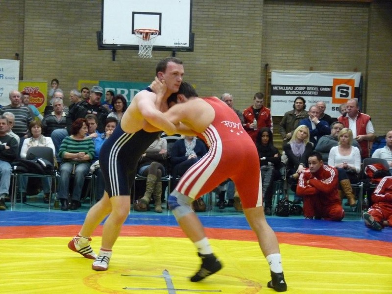 Im 120kg-Freistil lieferten sich Ludwig Schneider und der Gästetrainer Marco Bechtel einen denkbar knappen Kampf. Jede Runde wurde nur mit einer Wertung entschieden. Letztendlich entschied Ludwig das Kräftemessen für sich und gewann mit 3:1.