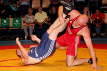 75kg-Freistil-Routinier Przemyslaw Motyl bewies gegen Bastian Dohm, dass er mit seinen 42 Jahren noch lange nicht zum alten Eisen gehört. Mit seinem dynamischen Kampfstil holte der Pole, der schon