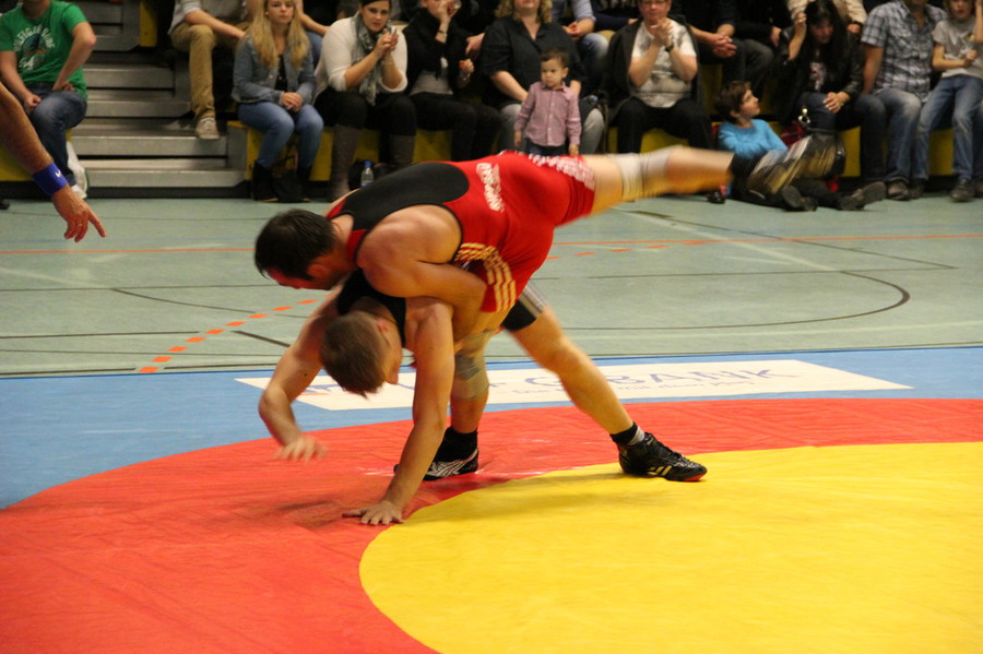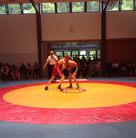 Ein Duell auf Augenhöhe lieferten sich Germanen-Punktebank Pascal Mieslinger und Sven Rauch in der Klasse bis 86kg-griechisch-römisch. Beide Ringer zeigten eine taktisch gute Leistung und versuchten jeden Fehler zu vermeiden. Jedoch behielt Mieslinger die Oberhand, er schaffte es mehrmals seinen Gegner ins Aus zu befördern und somit einen 2:0-Sieg zu erringen.